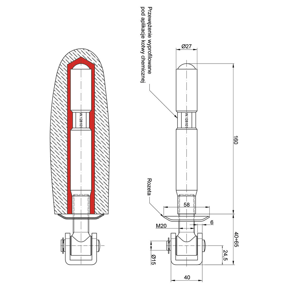 - Diâmetro do corpo da âncora: fi 27 mm
