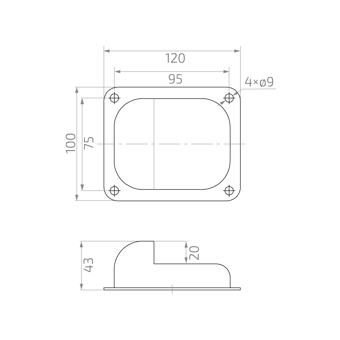 - Diâmetro dos furos de montagem: 4 × ⌀9 mm