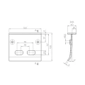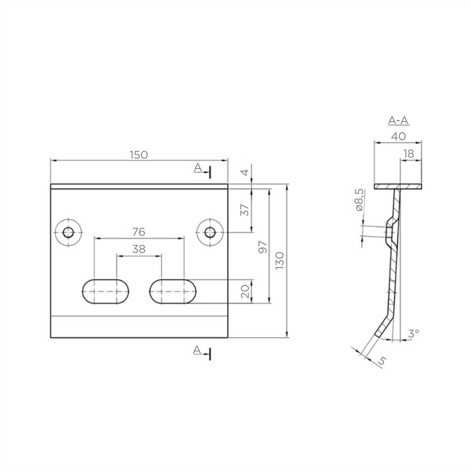 - Distância entre furos oblongos: 38 mm