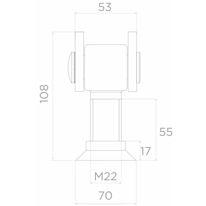 - Montagem rápida — rosca M22 aparafusada diretamente no poste de vedação