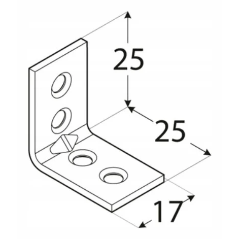 Cantoneira conector de montagem KW 1 25x25x17x1,5 mm zincada