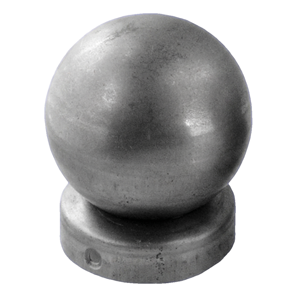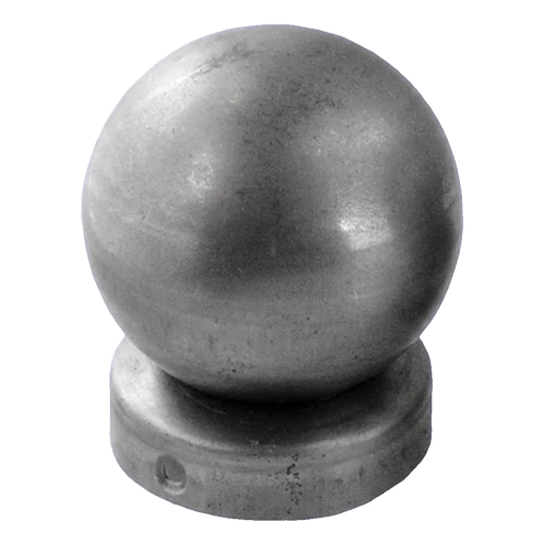 Capuz de vedação em aço com esfera decorativa destinado à montagem em postes redondos com diâmetro ⌀ 60 mm (2"). A esfera decorativa com diâmetro ⌀ 80 mm confere ao vedação um aspecto elegante e acabado, protegendo simultaneamente o interior do poste contra água, neve e outros fatores atmosféricos. O produto é fornecido em estado bruto — pode ser pintado ou protegido contra a corrosão por conta própria, adequando a cor a toda a estrutura da vedação.