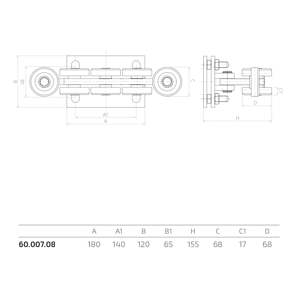 Carrinho de rolamento 80/8 em aço – 8 rolos para portões deslizantes 1000 kg