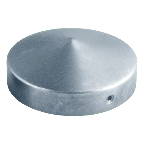 Chapéu redondo em aço galvanizado destinado a colocar em postes de vedação com diâmetro Ø 48 mm. Protege eficazmente o topo do poste contra chuva, neve e outros fatores atmosféricos, prevenindo a corrosão e o desgaste prematuro. O formato cónico da parte superior garante escoamento livre da água, eliminando o risco de acumulação de humidade no topo do poste.