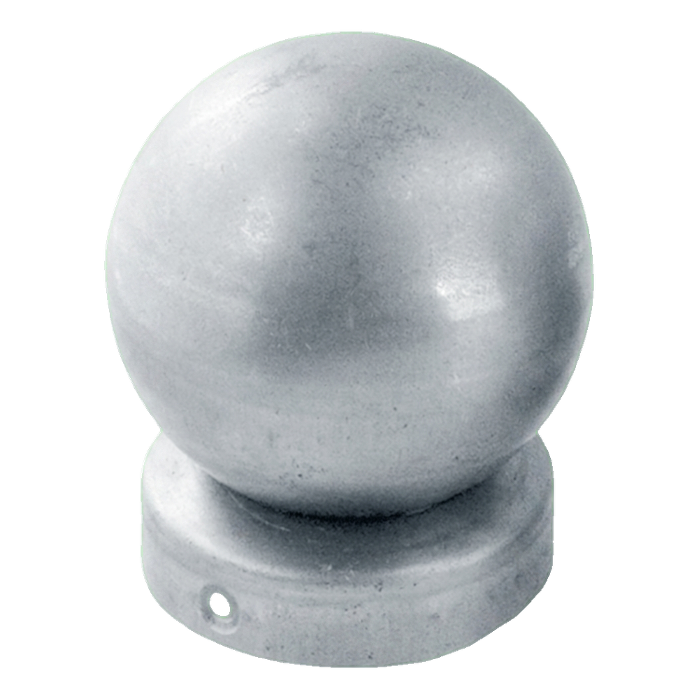 Chapéu de vedação redondo com bola decorativa destinado à montagem em postes com diâmetro Ø 60 mm. Fabricado em aço galvanizado, protege eficazmente a extremidade superior do poste da precipitação atmosférica e da corrosão, conferindo simultaneamente ao vedação um acabamento estético e profissional. É um elemento prático que combina função protetora com decorativa — solução ideal para empresas que executam vedações metálicas e de madeira.