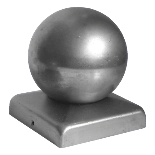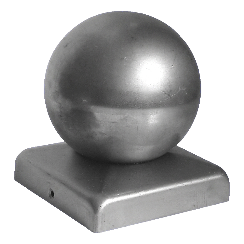 Chapéu de vedação em aço com bola decorativa destinado ao remate de postes com secção 70×70 mm. Protege eficazmente a aresta superior do poste contra a penetração de água e corrosão, conferindo simultaneamente à vedação um aspeto estético e acabado. Produto galvanizado — pronto para montagem sem necessidade de pintura adicional, embora possa ser pintado em qualquer cor se necessário.