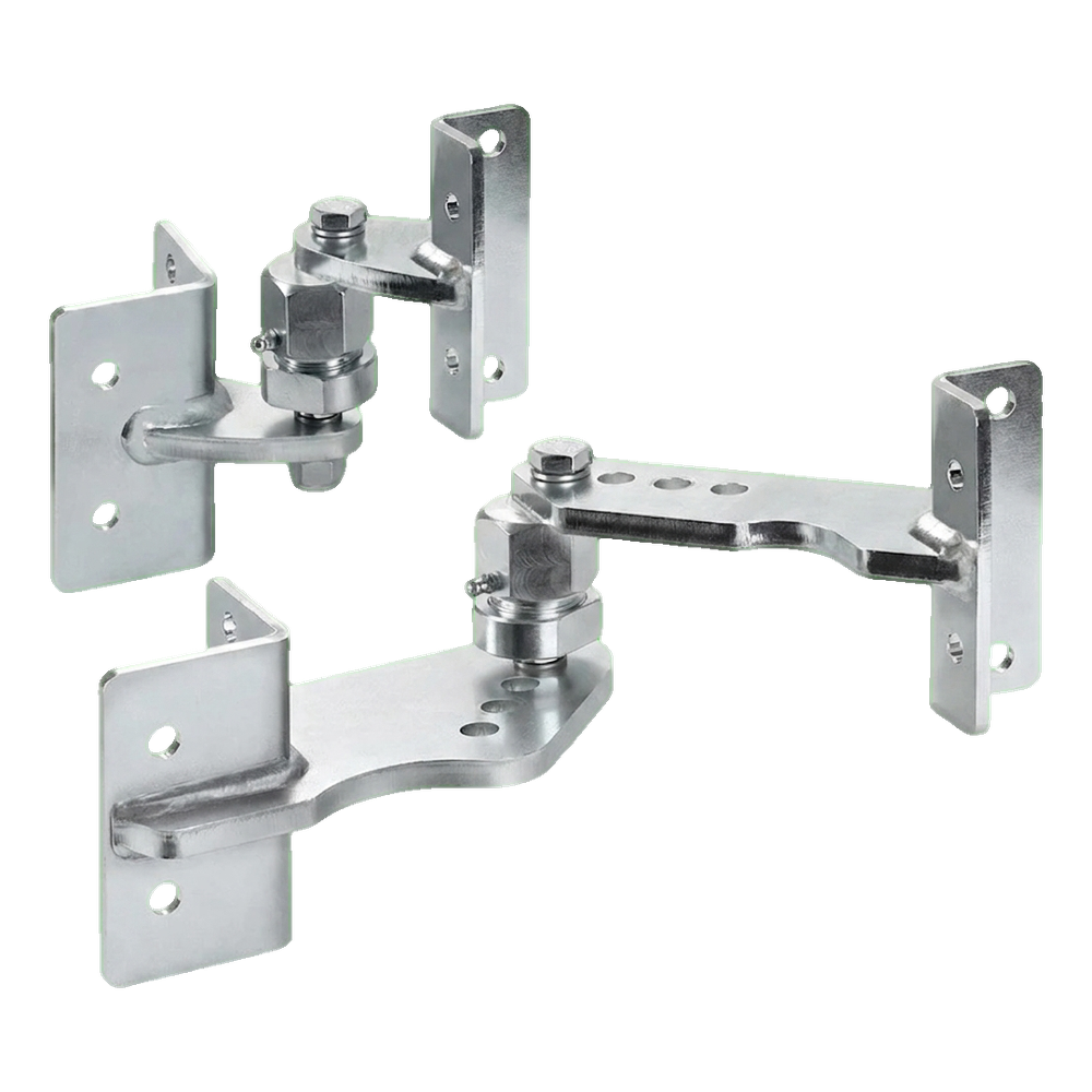 O conjunto destina-se à montagem profissional de portões com peso até 150 kg e comprimento máximo da folha até 3 metros, com ângulo de elevação do terreno até 10° (~20%). Graças às articulações equipadas com nipples de lubrificação, a manutenção é rápida e conveniente — sem necessidade de desmontagem das dobradiças.