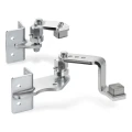 Comunello – conjunto completo de dobradiças esquerdas para soldar destinado à montagem de portões de batente em encostas ascendentes. O conjunto permite uma regulação precisa da posição da folha através de parafuso excêntrico que liga o suporte da folha à articulação — a rotação da articulação permite posicionar a folha perfeitamente na horizontal e alinhá-la com o poste, mesmo quando o terreno está inclinado.