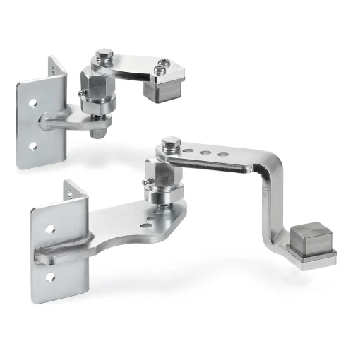 O conjunto de dobradiças Comunello é uma solução comprovada para instalações profissionais de portões de batente em condições de terreno difíceis. A galvanização eletrolítica garante proteção anticorrosiva duradoura, e os niplos de lubrificação asseguram exploração sem manutenção durante anos.