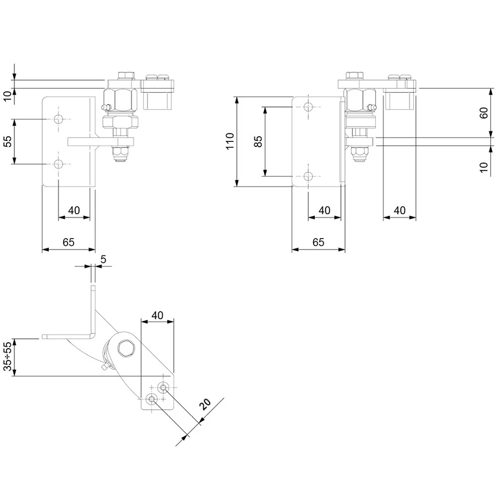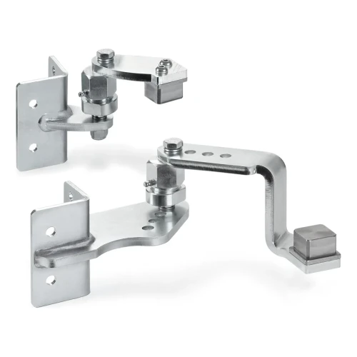Conjunto destinado à montagem em pilares metálicos e de betão. A construção em aço galvanizado garante resistência à corrosão e exploração duradoura em condições exteriores. Graças ao afastamento regulável do eixo de rotação (35–55 mm), o instalador adapta flexivelmente a montagem às condições no local.