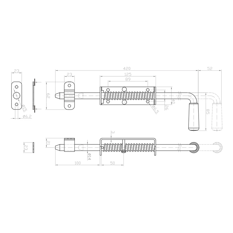 Ferrolho com mola zincado 420x14 mm