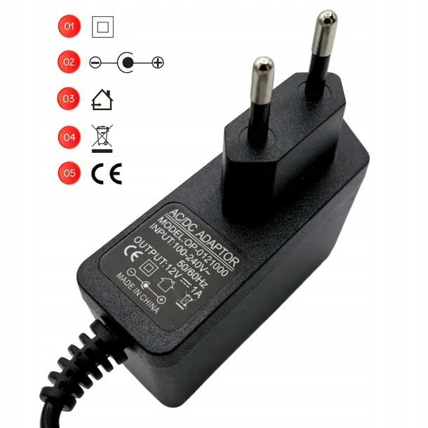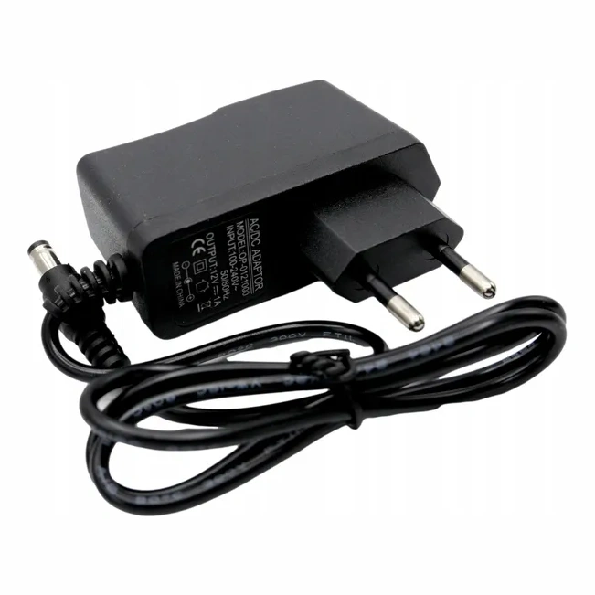 Transformador de ficha 12V 1A 12W é um adaptador de rede AC/DC comprovado, destinado a alimentaçao de dispositivos de baixa tensao, tais como fitas LED, routers, câmaras IP ou controladores de automaçao. A construçao compacta tipo ficha permite ligá-lo diretamente a tomada de 230V — sem cabos adicionais do lado da alimentaçao.