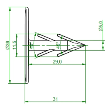 Porque escolher? A construçao especial com farpas duplas garante uma fixaçao segura no isolamento, e o disco plano com 39 mm de diâmetro pressiona eficazmente a película sem a danificar. A extremidade afiada permite perfurar facilmente a película e cravar no isolamento – a montagem é feita num único movimento, sem ferramentas adicionais.
