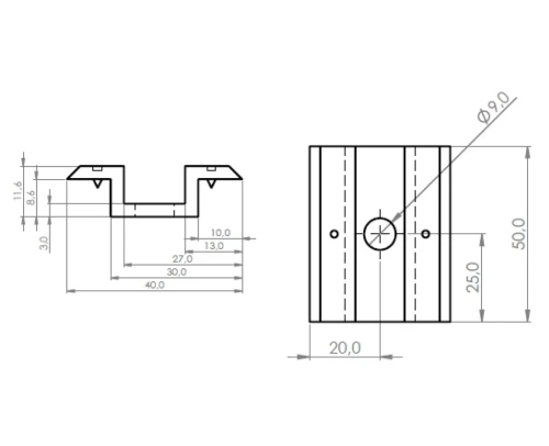 O grampo de aperto intermédio H8 com pino de ligação à terra é um elemento de montagem profissional destinado à fixação de módulos fotovoltaicos com altura de moldura a partir de 30 mm. Fabricado em liga de alumínio de alta qualidade 6063-T66, garante uma fixação durável e segura dos painéis solares na estrutura de suporte. A superfície do elemento permanece crua, sem revestimentos de proteção adicionais, o que permite uma equalização de potenciais precisa e fiável entre os elementos da instalação.