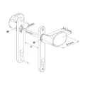 O conjunto inclui parafusos de fixação que permitem instalação em perfis com espessura de 37 mm a 65 mm, abrangendo a maioria dos perfis populares utilizados em vedações e portões. O espigão quadrado de 8 mm e a distância normalizada de 92 mm garantem uma ligação sólida e segura com a fechadura e montagem rápida sem necessidade de processamento adicional do perfil.