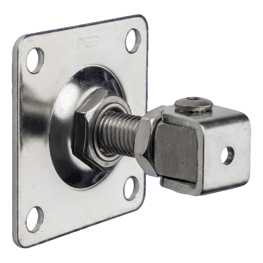 PSG dobradiça regulável para portão M20 com placa 100×100 mm – aço inoxidável AISI 304