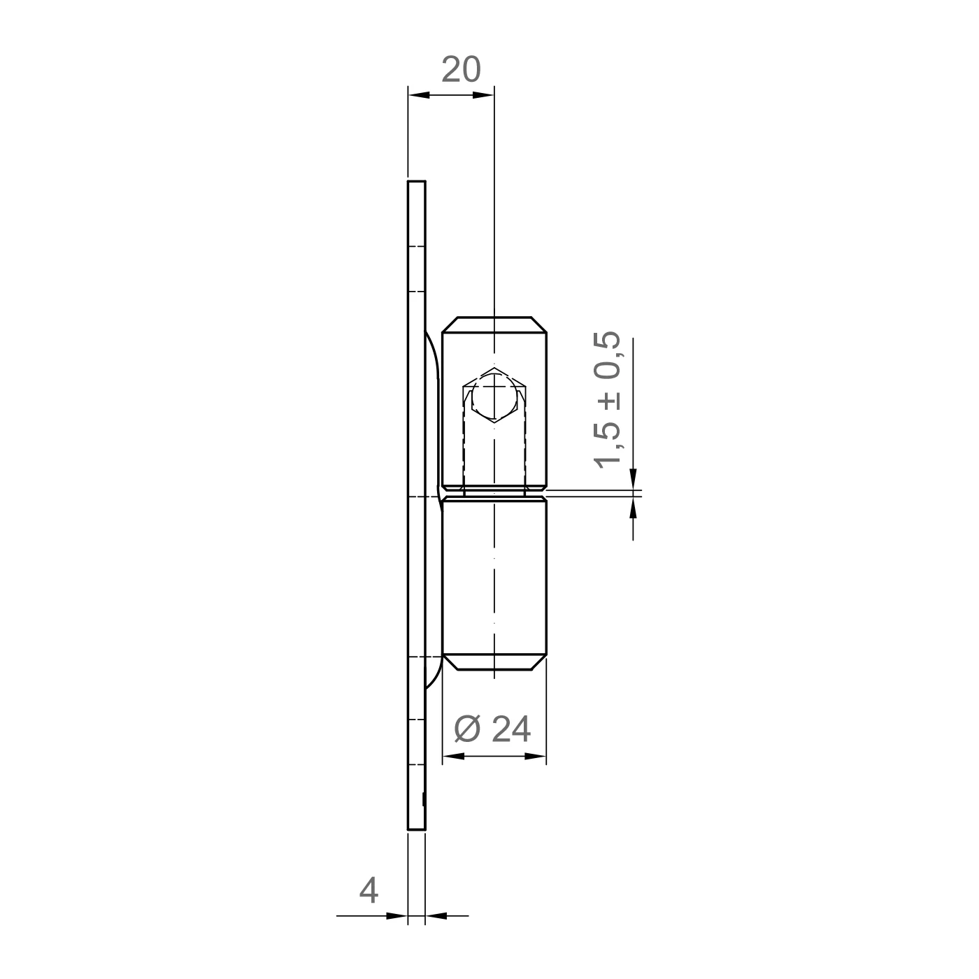 A superfície galvanizada garante proteção anticorrosiva por muitos anos, permitindo que a dobradiça funcione perfeitamente em condições exteriores. A bucha rolamentada com diâmetro fi 24 mm garante funcionamento suave e elevada resistência a cargas mecânicas. Dois furos de montagem na chapa permitem aparafusamento rápido e seguro ao poste de vedação.