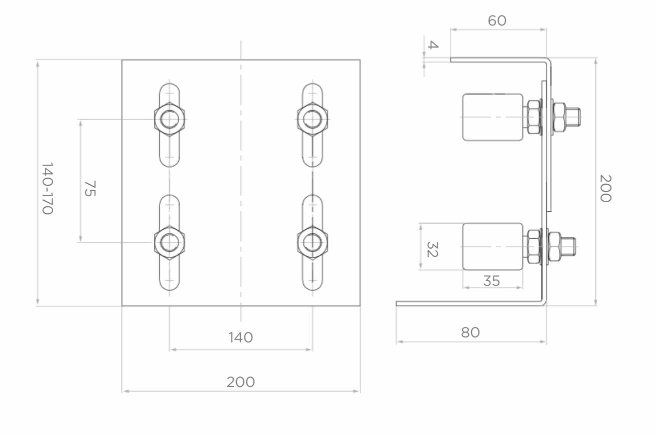 - Dimensões da chapa de montagem: 200 × 200 mm
