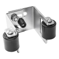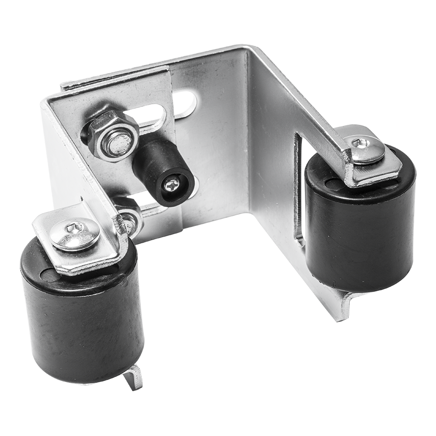 O suporte monta-se na parte superior da abertura do portão (na verga ou pilar). Após o fecho do portão, a folha entra entre os rolos, que a estabilizam lateralmente e previnem vibrações sob a influência do vento. A regulação do espaçamento permite o ajuste preciso à espessura da folha específica no intervalo de 55 a 90 mm — basta afrouxar os parafusos de fixação, ajustar a distância desejada e apertar novamente. A versatilidade deste elemento torna-o um acessório indispensável na montagem de portões de correr, tanto autoportantes como com carril.