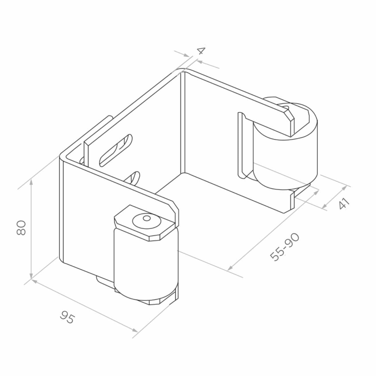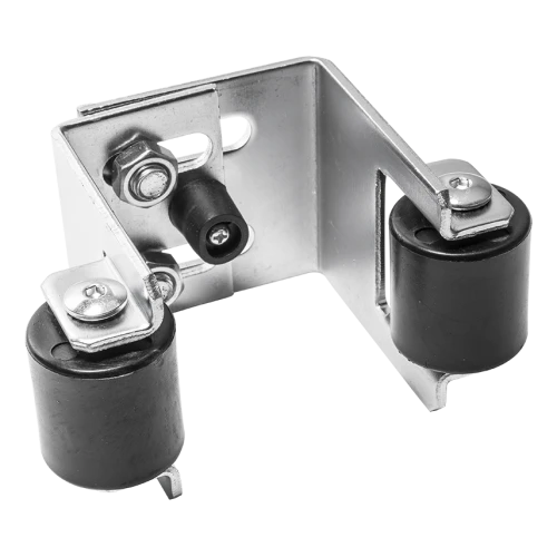O suporte está equipado com dois rolos guia com revestimento de borracha, que guiam suavemente a folha do portão sem riscar a tinta, e com um amortecedor de borracha que absorve o impacto do portão na posição fechada. O corpo feito de chapa de aço com 4 mm de espessura garante alta rigidez, e a galvanização assegura resistência à corrosão durante muitos anos — mesmo em condições atmosféricas exigentes.
