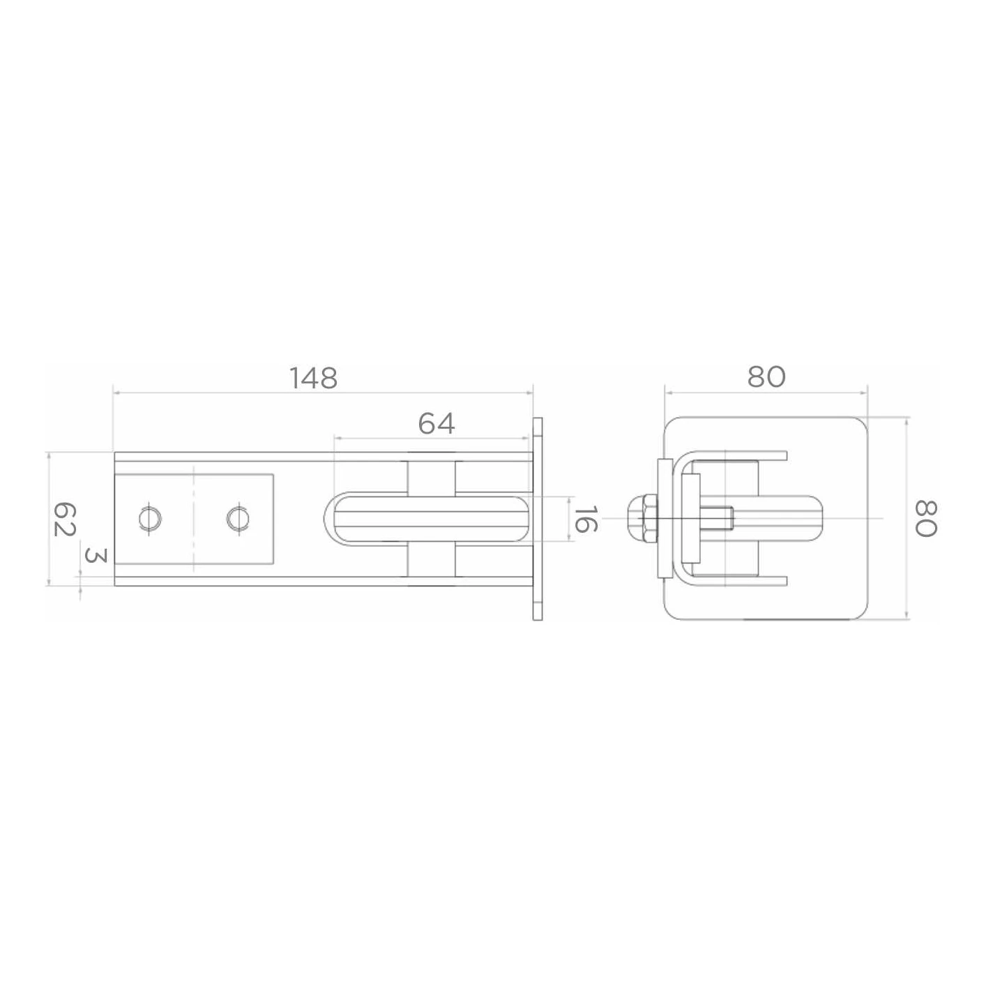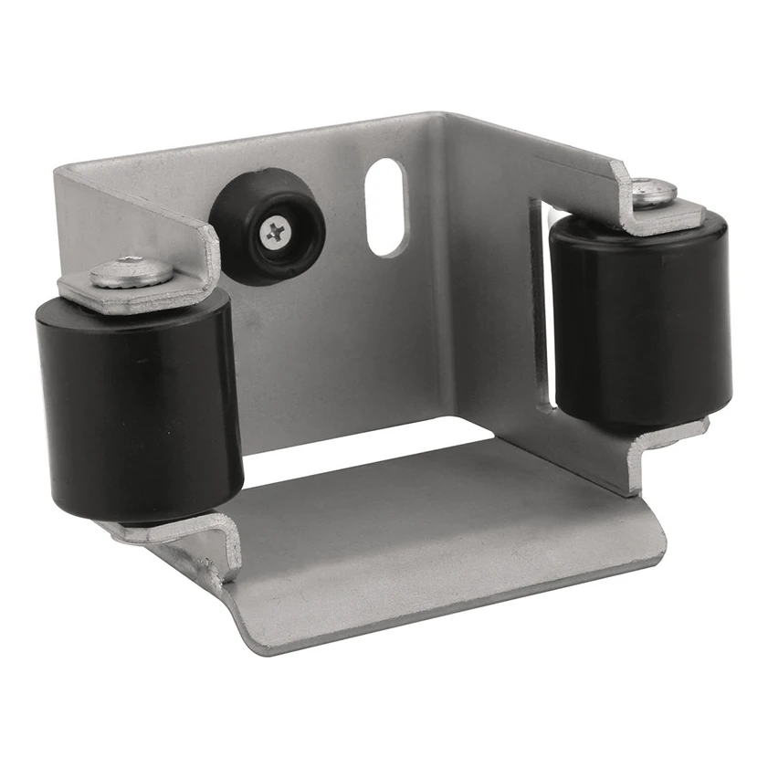 O suporte de entrada estabiliza o portão após o fecho e guia-o para a trajetória correta graças a dois rolos de plástico. O espaçamento entre os rolos é de 88 mm, o que garante uma condução precisa do carril 80×80 mm com a folga de trabalho adequada.