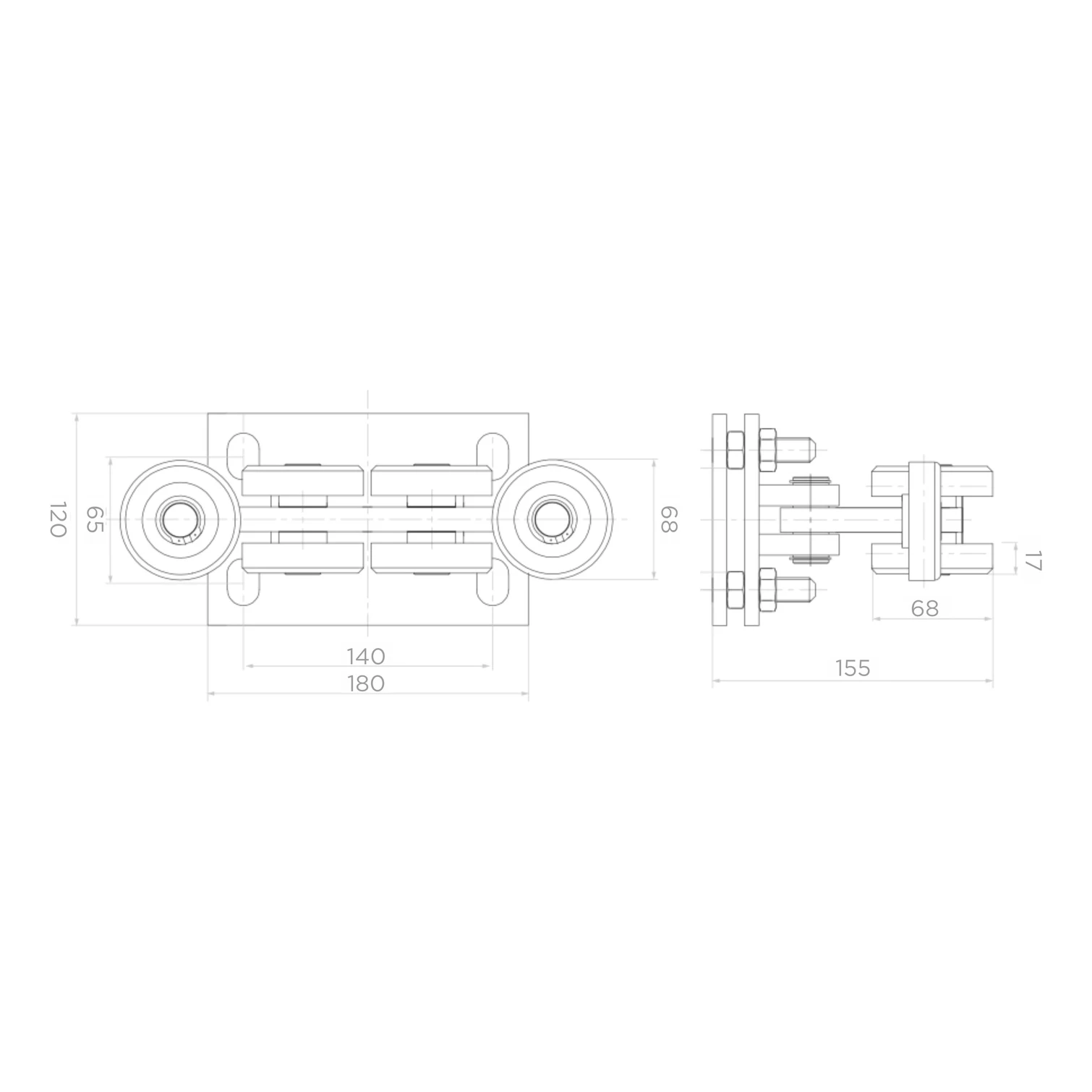 - Carrinho de rodagem 80 (6 rolos, aço): 2 un.
