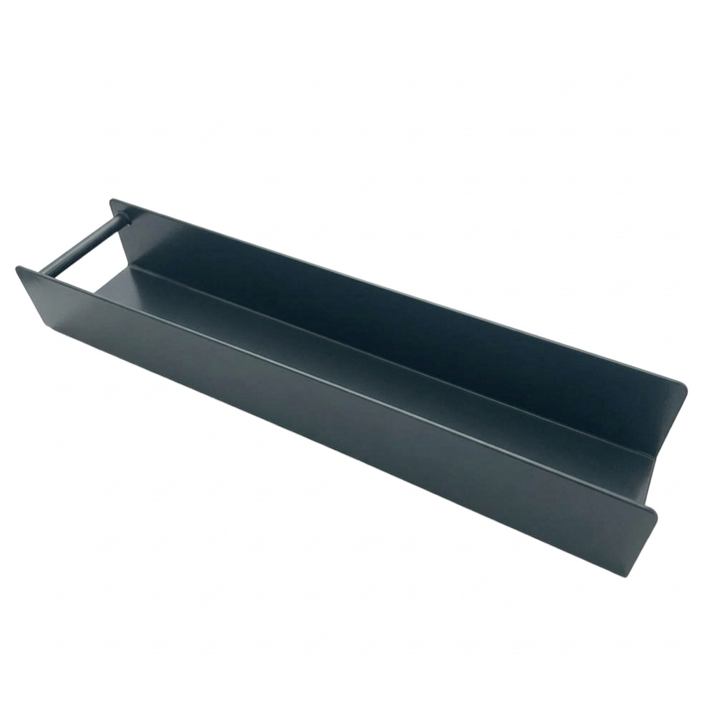 O perfil tem formato em U (perfil em U), no qual se encaixa a placa de betão do murete. A largura interior do perfil é de 52 mm, permitindo o encaixe fácil e estável de uma placa de 50 mm de espessura com uma pequena folga de montagem. A barra transversal Ø 6 mm integrada funciona como bloqueio — impede que o murete se desloque do suporte, aumentando a durabilidade e segurança de toda a construção.