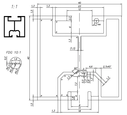 - Os perfis de montagem com dimensões de 4x4cm para parafusos hexagonais são fabricados em alumínio 6060 de alta qualidade.