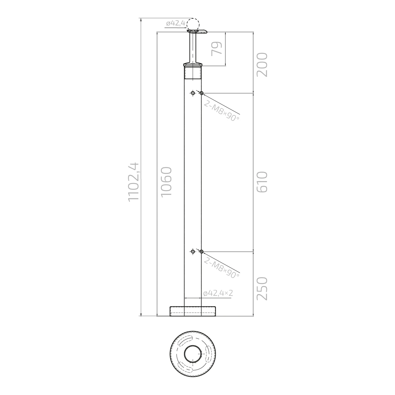 - Diâmetro do tubo: ø42,4 mm, espessura da parede: 2 mm