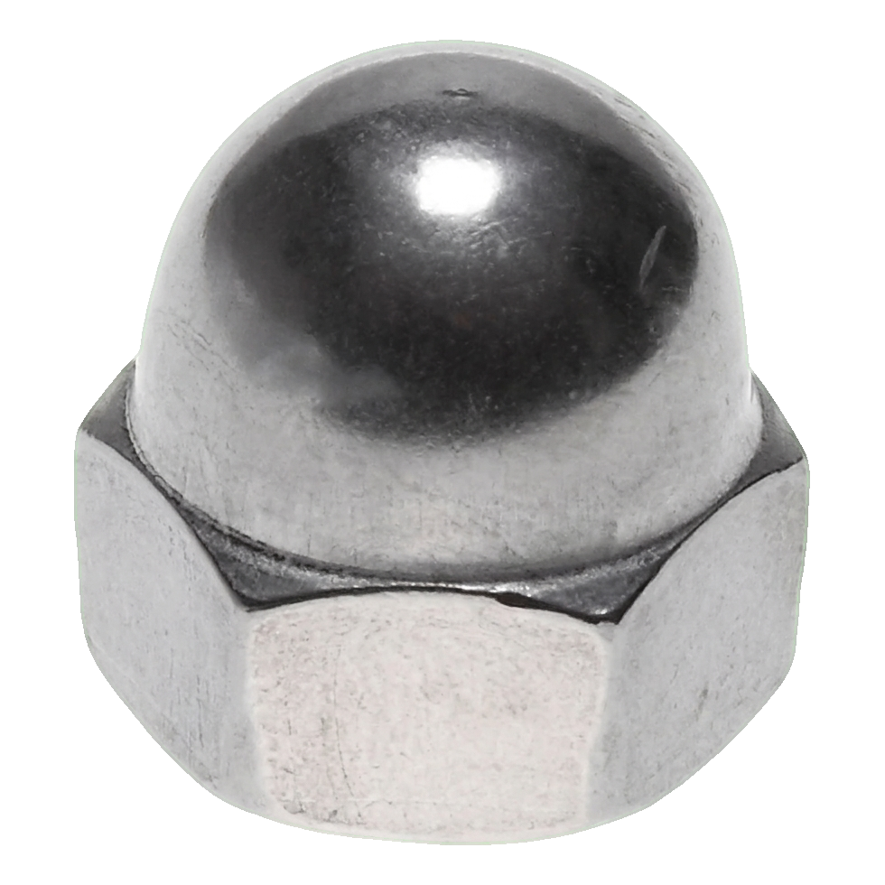 Porca cega M8 DIN 1587 em aço inoxidável A2 (AISI 304) é um elemento de fixação utilizado para fechar esteticamente ligações roscadas. A forma fechada e abobadada da porca protege eficazmente a rosca contra corrosão, sujidade e danos mecânicos, conferindo simultaneamente uma aparência elegante e decorativa à ligação.