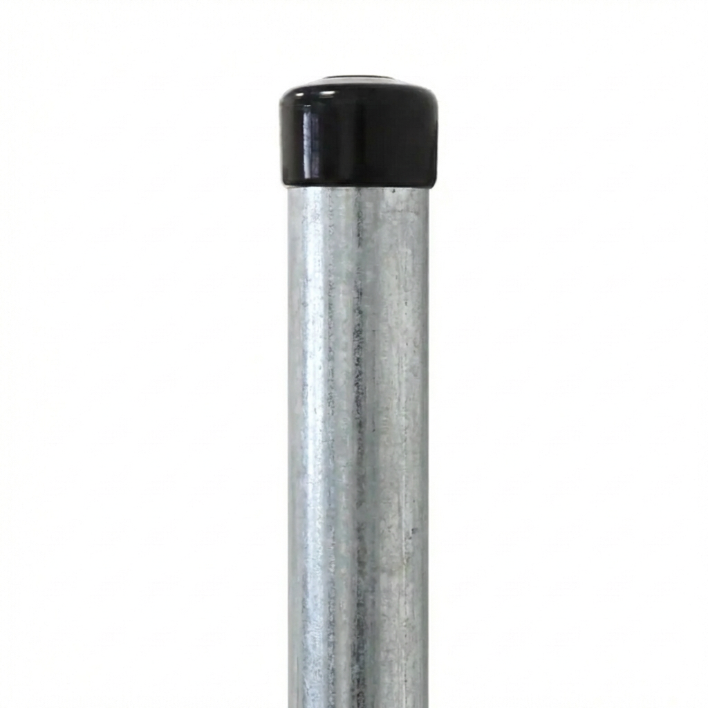 A espessura de parede de 1,5 mm garante maior rigidez e resistência mecânica em comparação com variantes de parede mais fina. O tubo de aço galvanizado a quente adquire um revestimento de zinco duradouro, que constitui uma barreira eficaz contra a ferrugem e a ação de agentes externos. A parte superior do poste é rematada com uma tampa de proteção em plástico, que protege o interior do tubo contra a penetração de água, neve e sujidade – prolongando ainda mais a vida útil do produto.