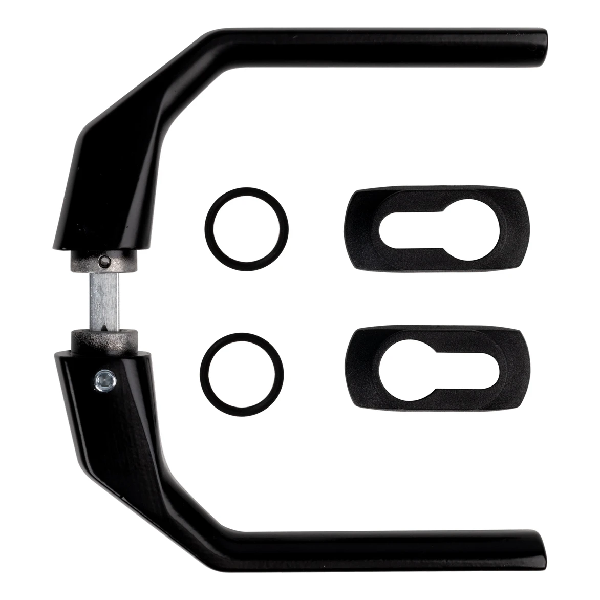 Puxador de porta preto 125×80 mm – conjunto completo com espelhos