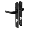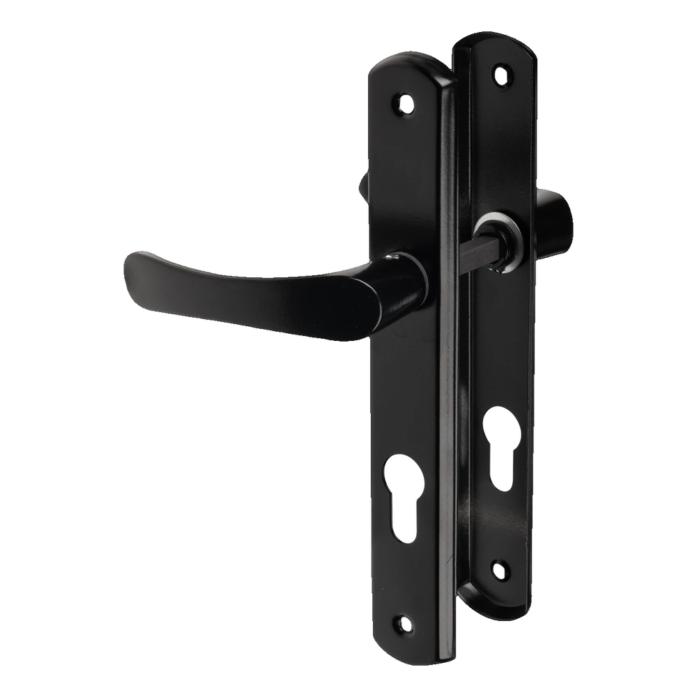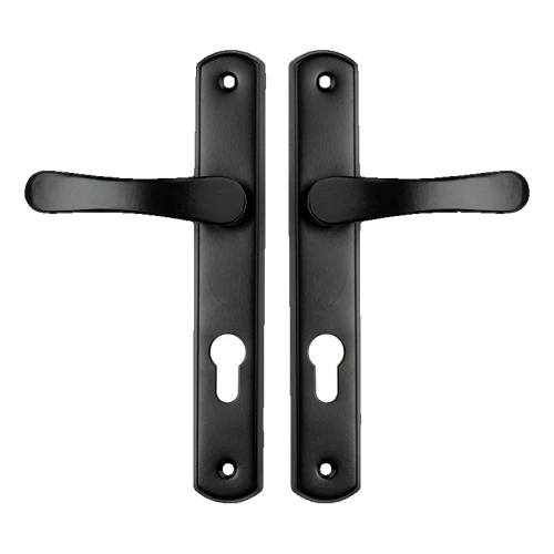 Puxador de porta Yale com placa biscoito preto – distância entre centros 72 mm