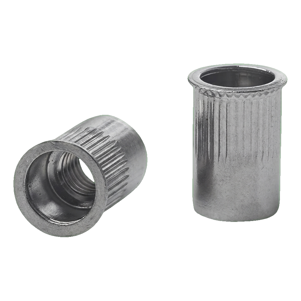 Rebite roscado passante M6 A2 AISI 304 – flange cónico reduzido, estriado