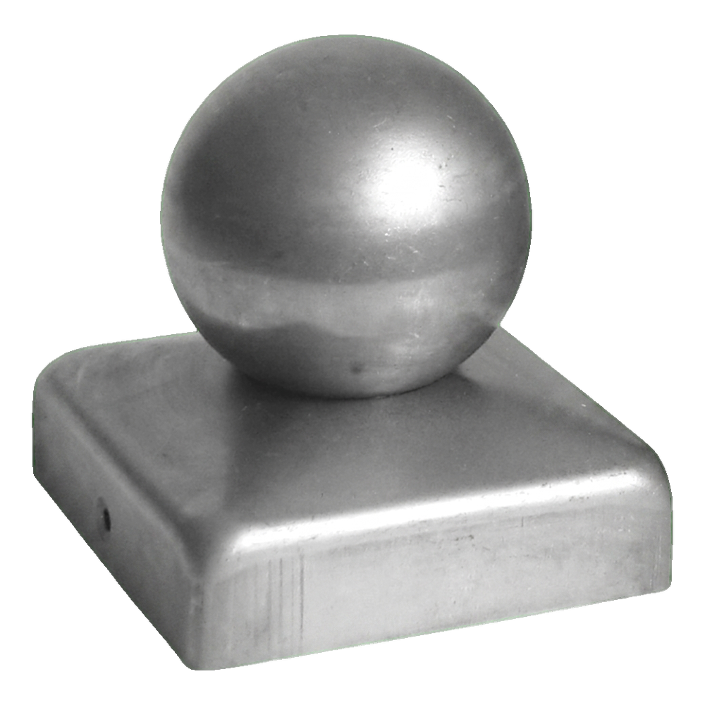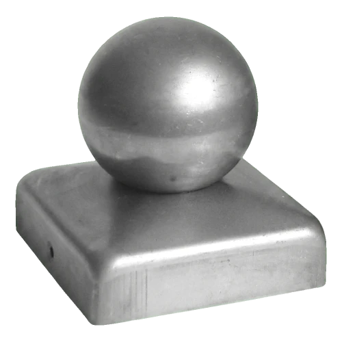 Remate de aço para poste de vedação 100×100 mm com esfera ø 60 mm – em bruto
