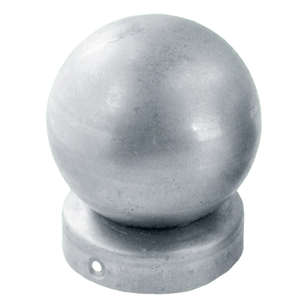 Remate de vedação de aço com bola decorativa destinado ao acabamento de postes de tubo redondo com diâmetro ø 48 mm. A bola decorativa com diâmetro ø 60 mm confere à vedação um aspeto estético e elaborado, protegendo simultaneamente de forma eficaz o interior do tubo contra a penetração de água da chuva, sujidade e humidade — prolongando significativamente a vida útil de toda a estrutura da vedação.
