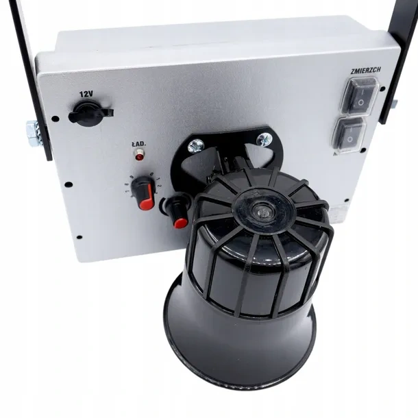 O dispositivo pode ser alimentado por tomada 230V (transformador incluído) ou por qualquer bateria 12V, permitindo instalaçao em praticamente qualquer local – sem necessidade de ligaçao a rede elétrica. Para trabalho no terreno, recomenda-se bateria com capacidade de 18 Ah ou superior. O conjunto inclui cabos de ligaçao a bateria.