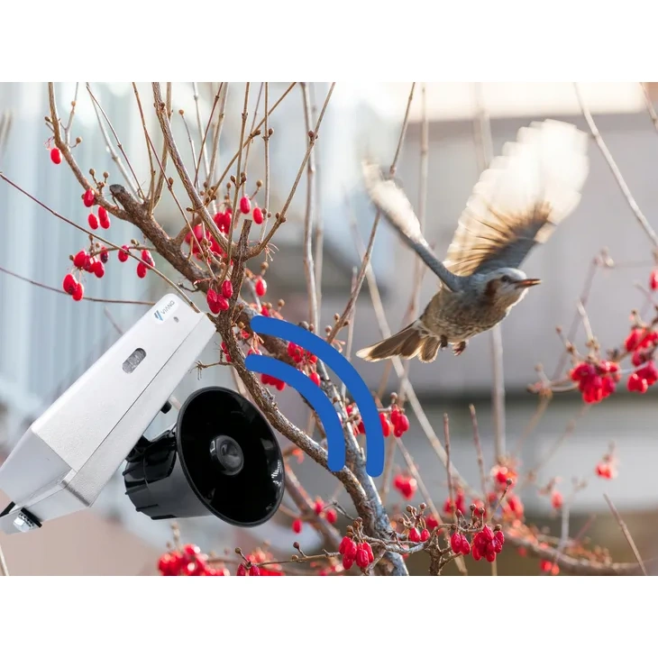 O dispositivo emite uma sequencia de sons muito altos e penetrantes – tres tipos de sirenes de alarme, sinal de aviso de navio e buzina de comboio. A sequencia é reproduzida duas vezes e o tempo total de emissao é de 38 segundos. Esta diversidade de sons afugenta eficazmente javalis, veados, raposas, cervos e aves, evitando o efeito de habituaçao.