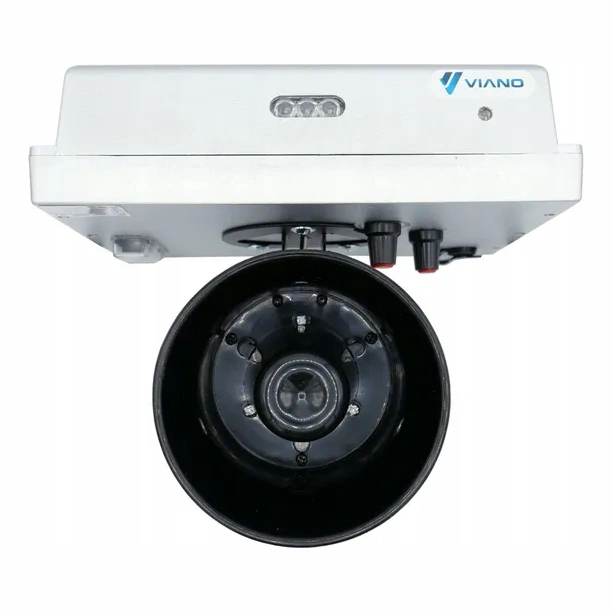 O repelente VIANO® PV-400-46 é o dispositivo acústico mais potente e avançado do mercado, concebido para proteçao eficaz de pomares, vinhas, plantaçoes, campos agrícolas e áreas industriais contra animais selvagens e aves. Graças ao amplificador de potencia integrado, gera som com pressao acústica até 120 dB, protegendo uma área até 7000 m2.