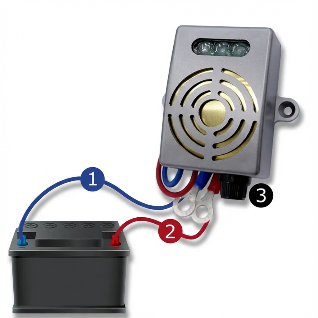 A instalação não requer ferramentas especializadas nem conhecimentos técnicos. Dois cabos com 90 cm de comprimento terminados em conectores de olhal ligam-se diretamente aos terminais da bateria. Todo o processo demora literalmente alguns minutos.