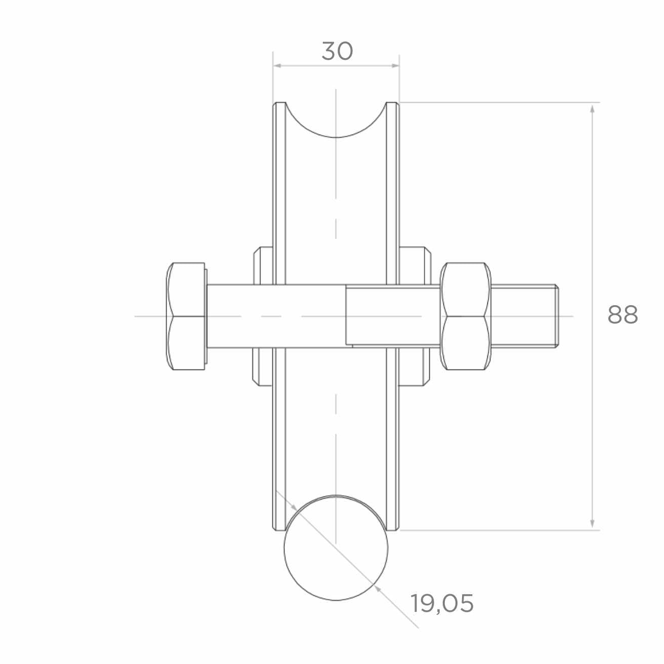 - Largura da roldana: 30 mm