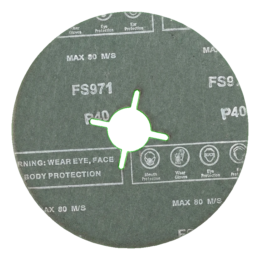 Durante o trabalho com disco fibrado devem ser utilizados equipamentos de proteção individual completos: proteção dos olhos e face, proteção auditiva, luvas de proteção e proteção das vias respiratórias. O disco é montado no prato de suporte da rebarbadora angular com diâmetro 125 mm.