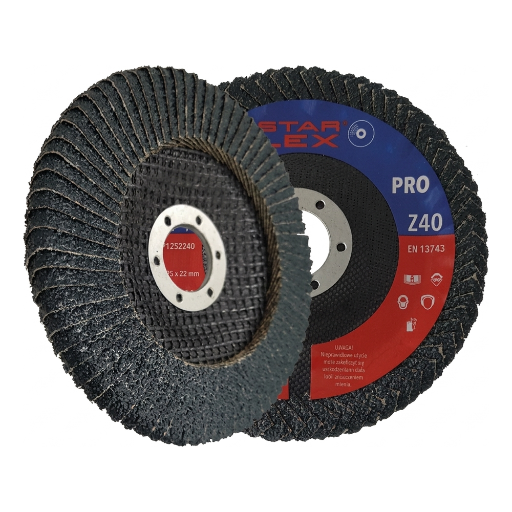 Starflex PRO Z40 é um disco laminar profissional projetado especificamente para o polimento rápido e preciso de soldas de filete. Graças à construção cónica tipo T27, o disco adapta-se perfeitamente aos cantos internos e locais de difícil acesso, permitindo obter um acabamento suave da superfície sem cortar o elemento trabalhado. Produto destinado tanto ao trabalho com aço carbono, como aço inoxidável (INOX) e outros metais — uma ferramenta para vários materiais na construção ou na oficina.
