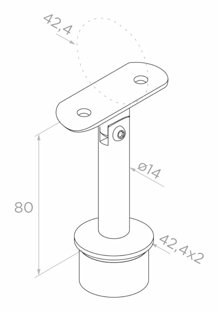 Suporte articulado de corrimão colado fi 42,4 mm, espigão fi 14 mm, H80, AISI 304, acetinado, sistema 42,4 mm (24 un.)