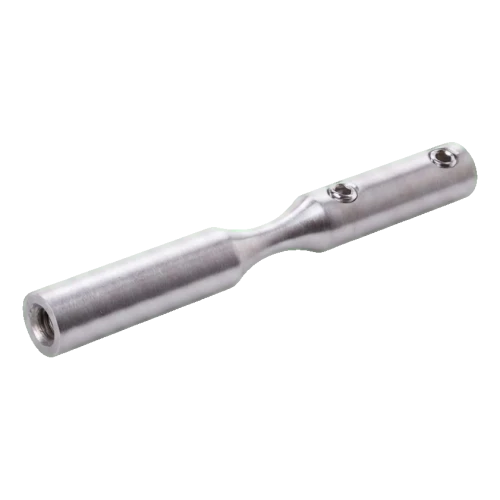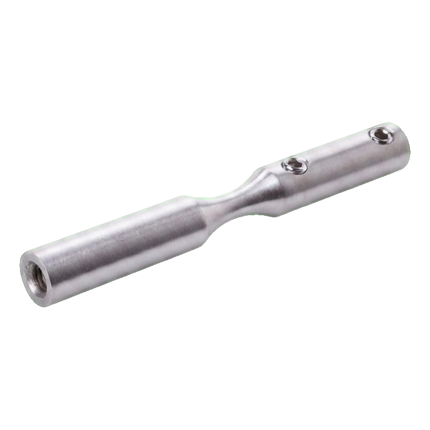 O elemento fabricado em aço inoxidável AISI 304 com acabamento cetim garante alta resistência à corrosão e uma aparência estética e discreta. A montagem é feita por aparafusamento — o suporte está equipado com roscas M6 e furos de bloqueio (Ø6 mm), o que garante uma ligação estável e durável com o cabo e a estrutura portante.
