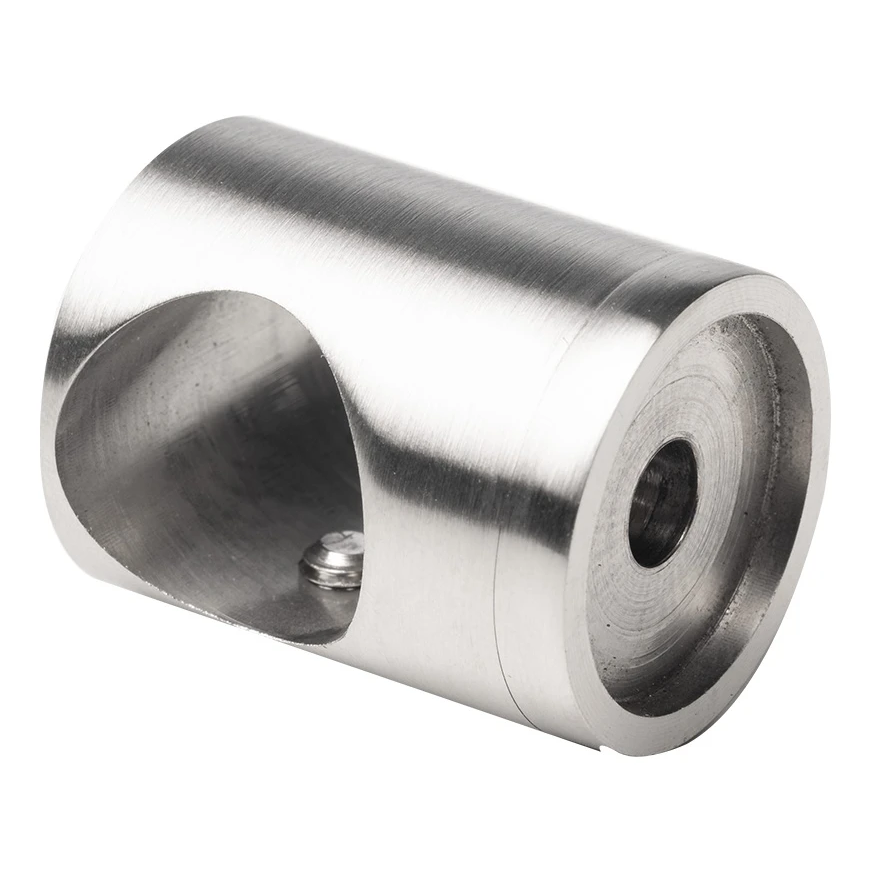 Graças à construção passante, o varão passa completamente através do suporte, garantindo uma condução estável e segura do elemento — melhorando significativamente a durabilidade da ligação em comparação com suportes de aperto. A montagem é realizada através de rosca M6 na superfície plana, o que torna o elemento excelente tanto para postes de balaustradas como para fixação a paredes, tampos ou painéis de vidro.