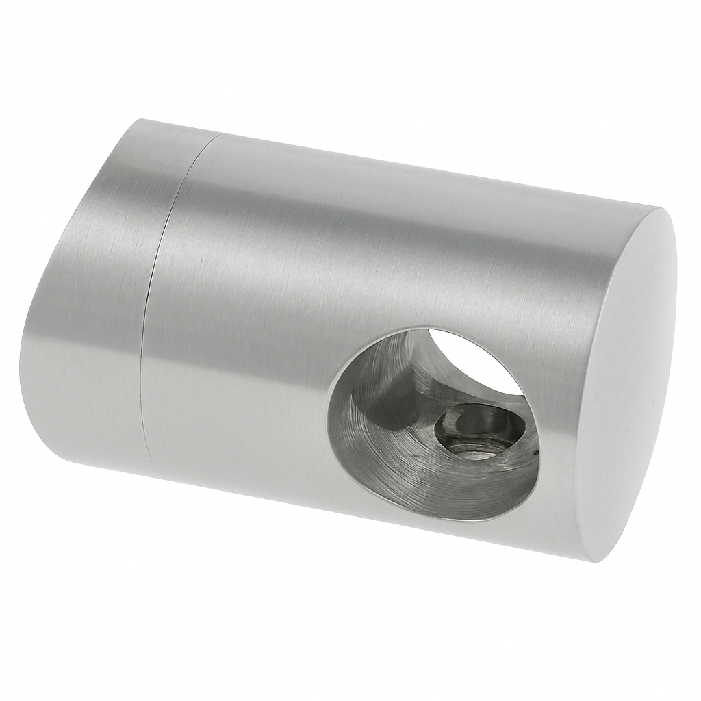 O suporte é montado diretamente no poste do corrimão em aço inoxidável. A construção em duas peças (corpo + tampa) permite uma montagem rápida — o varão de preenchimento é introduzido no orifício passante e, em seguida, o suporte é fixado ao tubo de suporte. O elemento une os varões de preenchimento individuais aos postes, garantindo solidez a toda a estrutura e um acabamento estético.