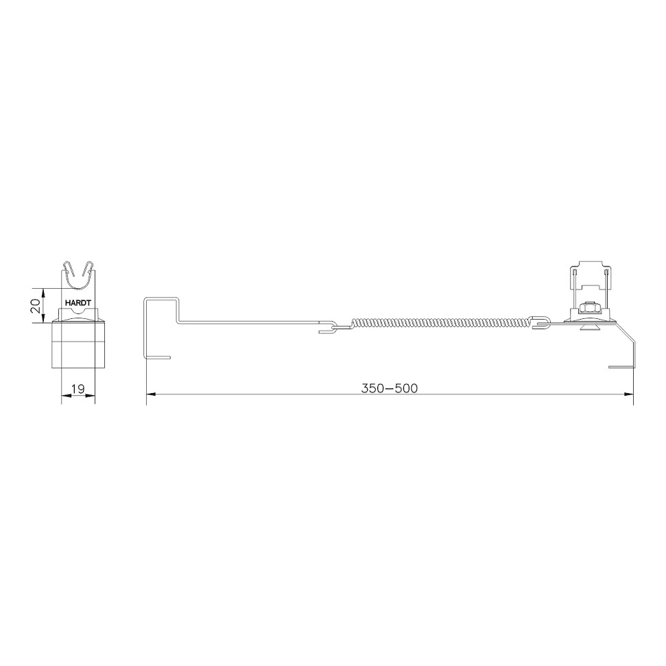 O suporte permite a condução de cabo para-raios Ø8 mm tanto ao longo como através da superfície do telhado. O mecanismo de aperto de mola abrange a gama de 350–500 mm, pelo que uma única solução funciona na maioria das telhas populares – sem necessidade de selecionar suportes dedicados para cada formato de cobertura.